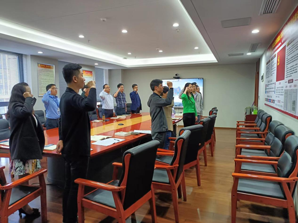 宣誓儀式上,全體黨員、入黨積極分子起立,奏唱國際歌。支部書記對(duì)新加入黨組織的預(yù)備黨員表示歡迎,祝賀黨組織充實(shí)了新鮮血液。面對(duì)鮮紅的黨旗,黨員同志們一起高舉右手,再次莊嚴(yán)宣誓。“我志愿加入中國共產(chǎn)黨……隨時(shí)準(zhǔn)備為黨和人民犧牲一切,永不叛黨。”鏗鏘有力的誓詞,強(qiáng)烈震撼著在場(chǎng)的每一位黨員,一字一句,神圣而豪邁,體現(xiàn)了黨員同志們對(duì)中國共產(chǎn)黨的無限忠誠和為共產(chǎn)主義奮斗終身的決心。