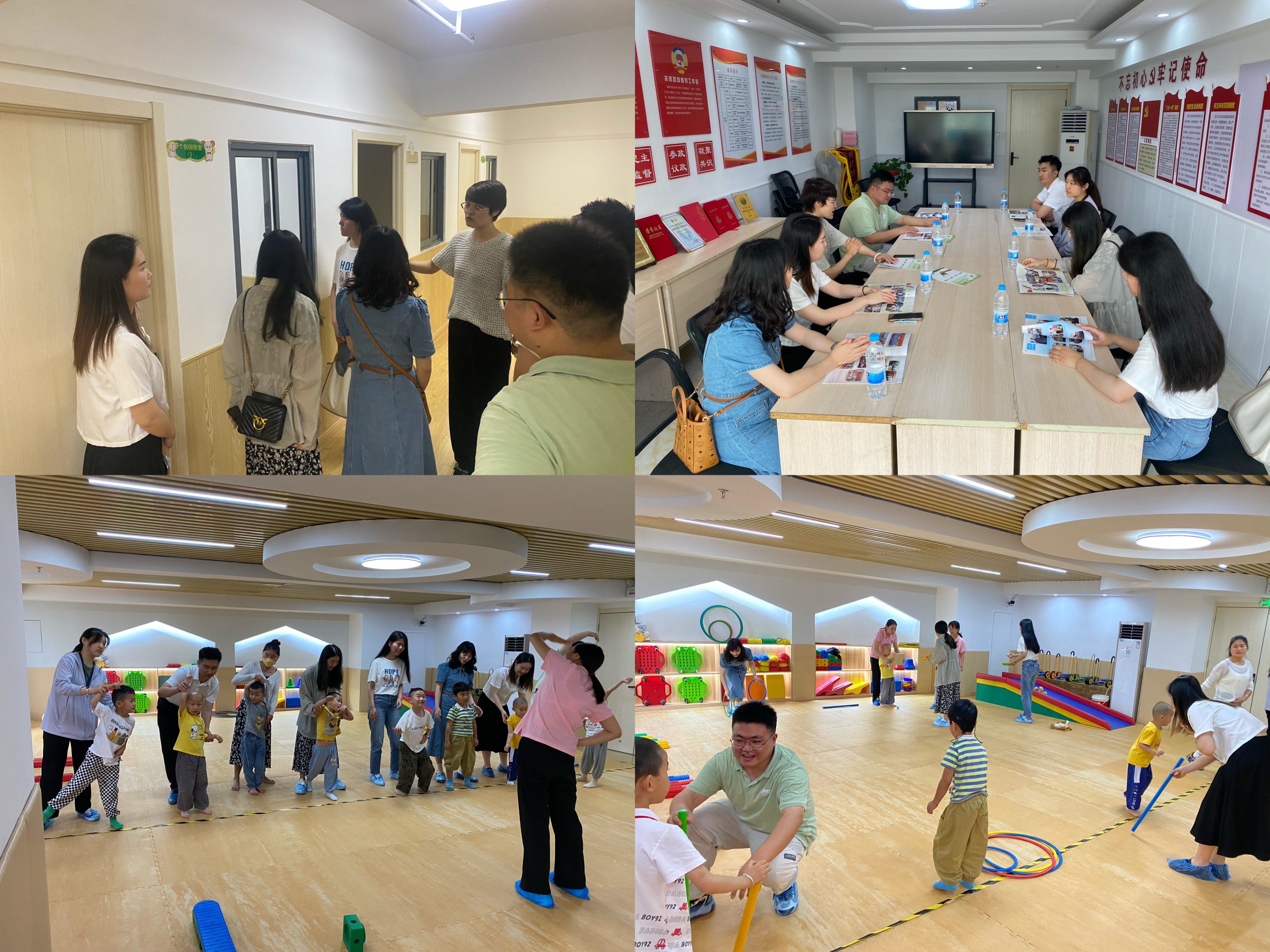 志愿服務隊的團員青年們還與孩子們共同上了一節感統課,每一位青年扮演孩子們的“臨時爸爸”“臨時媽媽”,在感統教室里陪著孩子們一對一的完成各項平衡類體育游戲訓練。短暫的相處,讓團員青年們感受到了孩子家長和老師的堅守和付出?;顒咏Y束,匯錦兒童康復中心向集團公司團委贈送了錦旗。
