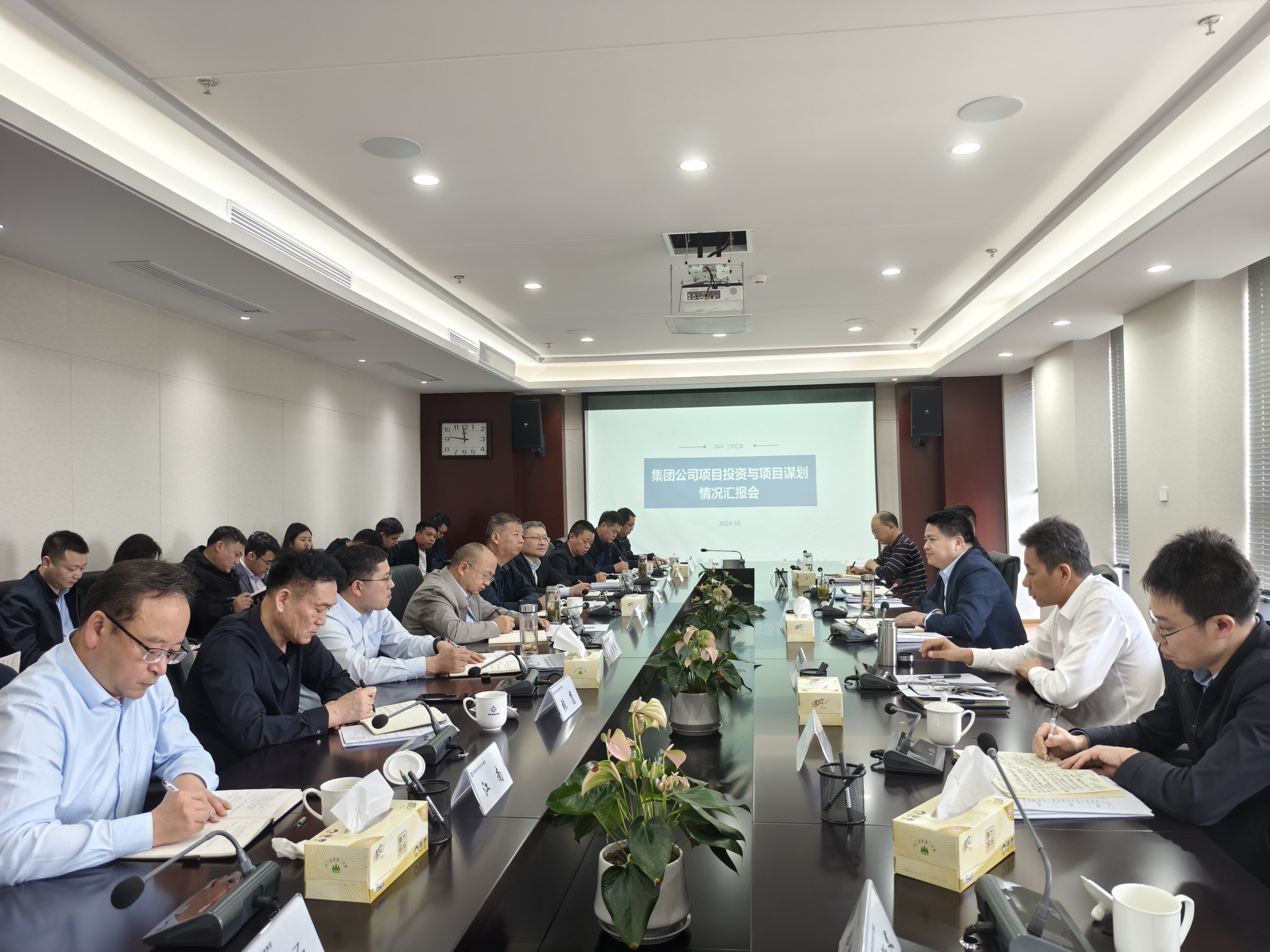 投資發展部匯報了本年項目完成情況、專班工作情況以及2025年項目謀劃情況,環科集團、修復公司、鹽業集團、地產集團、康養公司、城更公司圍繞項目謀劃工作分別作了交流發言。