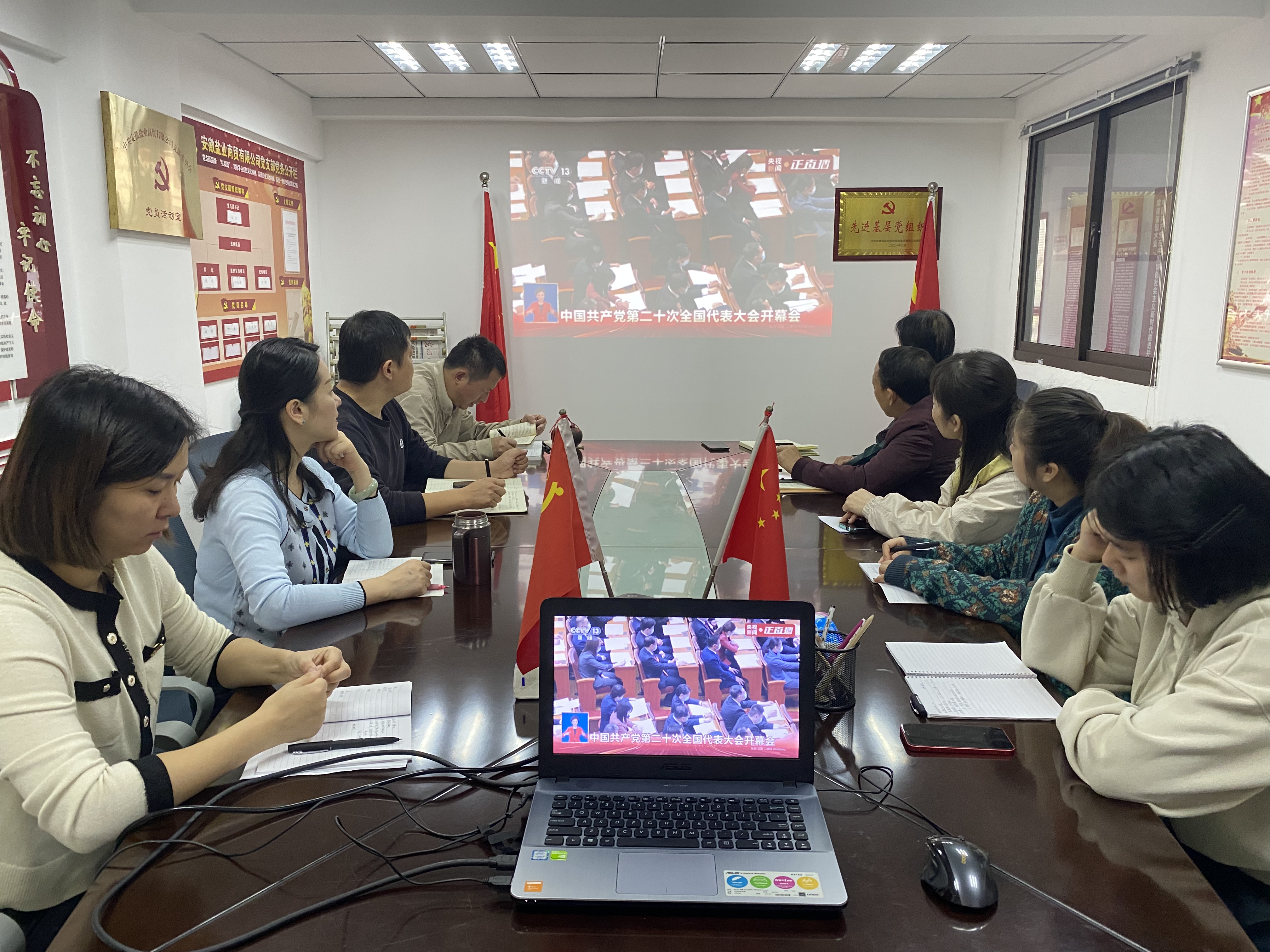 2022年10月16日上午,安鹽商貿公司黨支部組織全體干部職工觀看黨的二十大會議直播。