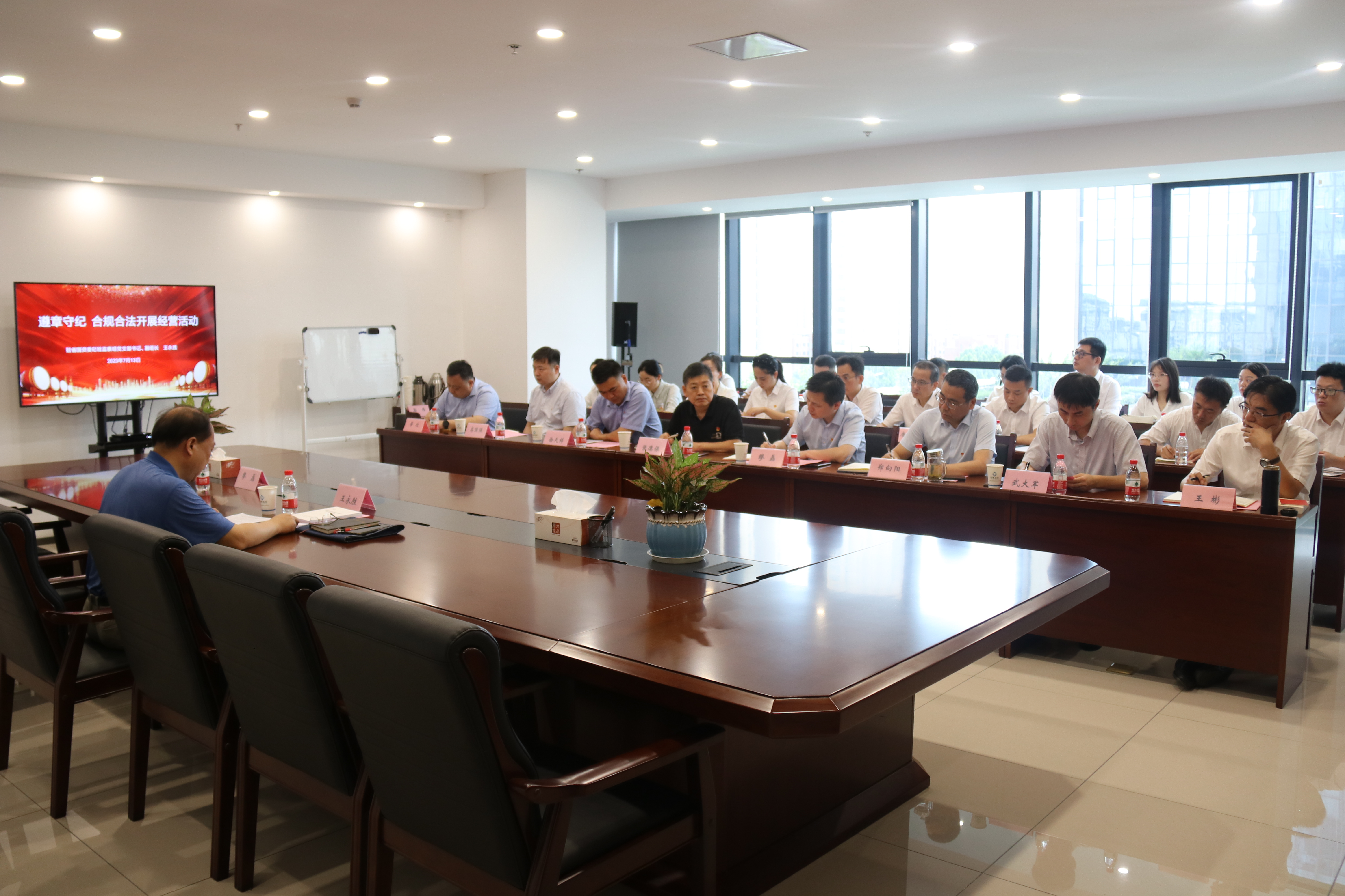 駐省國資委紀檢監察組黨支部書記、副組長王永勝同志為大家上題為《遵章守紀合規合法開展經營活動》的專題黨課。報告圍繞當前黨風廉政建設和反腐敗工作總體形勢和任務、嚴格執行中央八項規定精神以及廉潔自律等方面展開,例舉了大量的正反方面的案例,教育引導黨員干部始終牢記初心使命,堅定理想信念,知敬畏、存戒懼、守底線,慎微慎初慎獨慎權,當好廉潔從業表率。