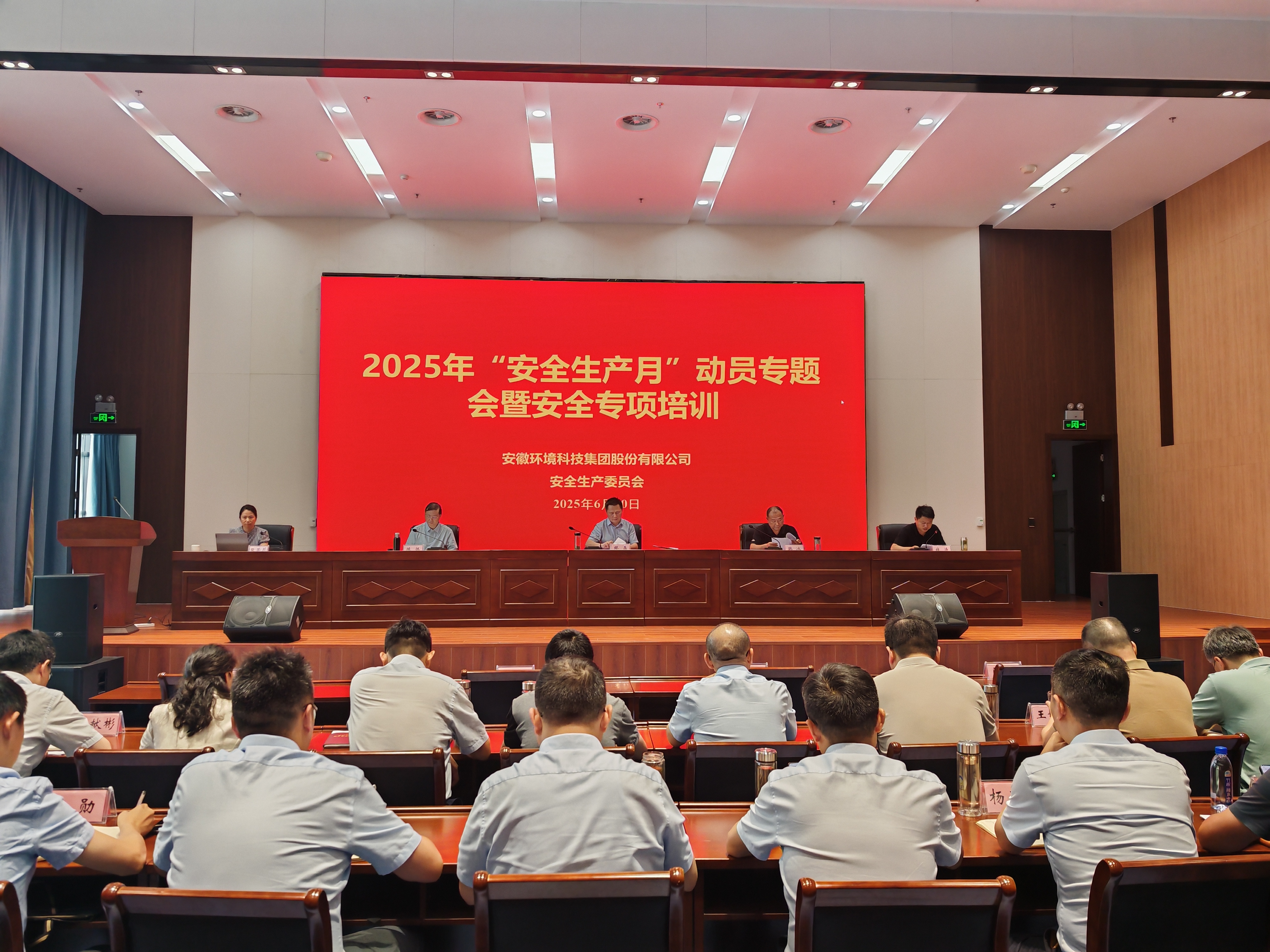 為深入貫徹落實國家關于安全生產工作的決策部署,強化全員安全意識,壓實安全責任鏈條,安徽環境科技集團于6月10日下午隆重召開2025年“安全生產月”動員暨安全專項培訓會,正式拉開以“人人講安全、個個會應急——查找身邊安全隱患”為主題的安全生產月活動序幕。集團領導班子成員、各部門、各子(項目)公司主要負責人、分管安全領導及專兼職安全管理人員等百余人現場參會。